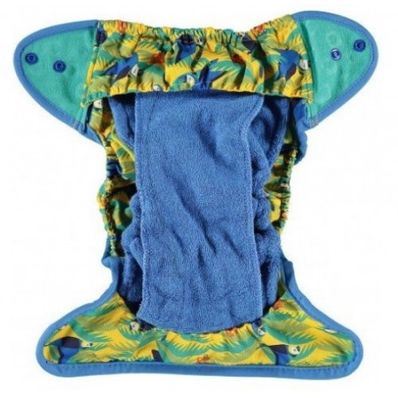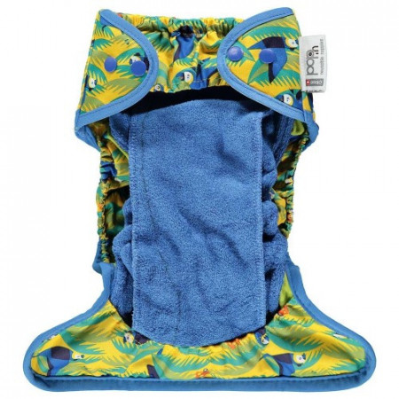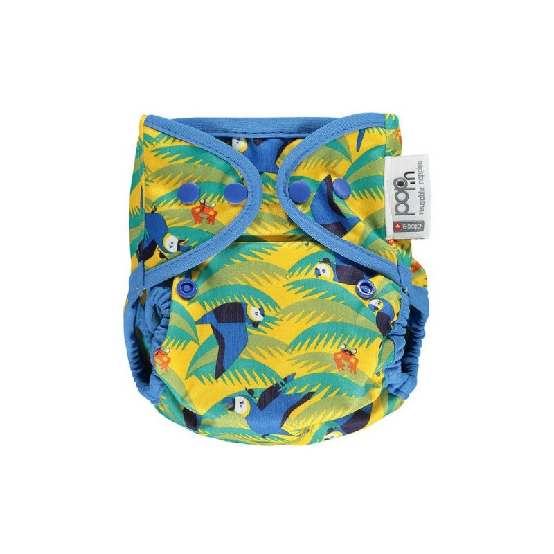 El pañal Pop-In es un sistema de pañal híbrido único; un cruce entre un pañal todo en uno y un sistema de dos partes. El absorbente interior se pone dentro de la cubierta exterior para que se separe para lavarlo y secarlo con facilidad.