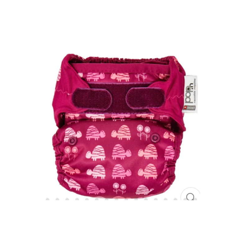 El pañal Pop-In es un sistema de pañal híbrido único; un cruce entre un pañal todo en uno y un sistema de dos partes. El absorbente interior se pone dentro de la cubierta exterior para que se separe para lavarlo y secarlo con facilidad.