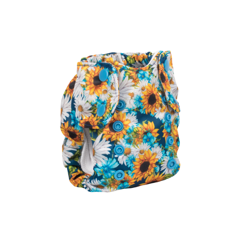 El pañal de tela orgánico, de talla única, todo en uno de Smart Bottoms se adapta a la mayoría de los bebés de 10 a 35 libras. Este pañal de tela de diseño único ofrece una absorción superior sin volumen adicional. El inserto adjunto se puede plegar para personalizar donde su hijo necesita la mayor absorción.