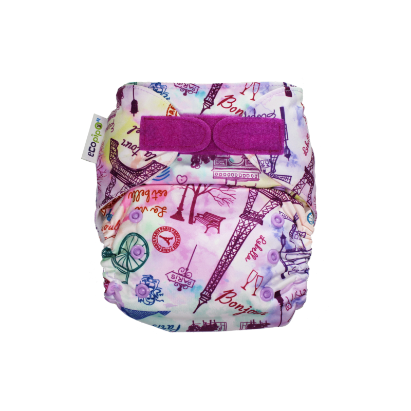 Pañal ecológico de bolsillo con tres absorbentes, uno corto de 3 capas de microfibra, uno corto de refuerzo con 2 capas de bambú terry y uno largo de 2 capas de bambú; que al unirse brindan 9 capas de absorción. Este pañal de ajusta desde los 3,500-3,800 kg (en promedio desde los 20 días de nacido) hasta los 16 kilos ( en promedio 3 años).