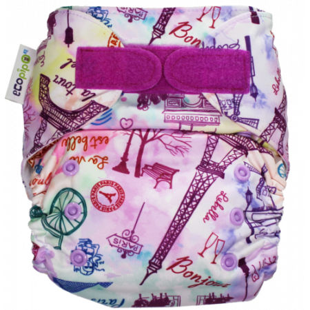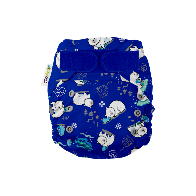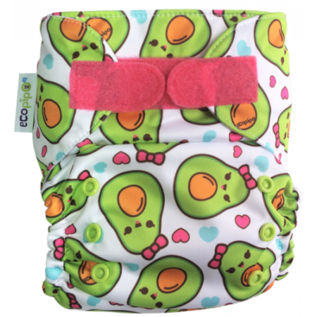 Pañal ecológico de bolsillo con tres absorbentes, uno corto de 3 capas de microfibra, uno corto de refuerzo con 2 capas de bambú terry y uno largo de 2 capas de bambú; que al unirse brindan 9 capas de absorción. Este pañal de ajusta desde los 3,500-3,800 kg (en promedio desde los 20 días de nacido) hasta los 16 kilos ( en promedio 3 años).